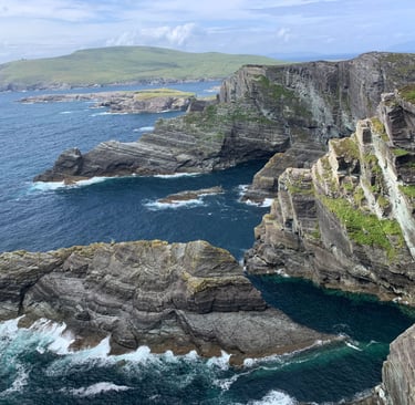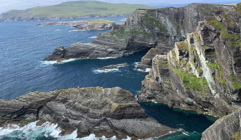 Moins fréquentées que les falaises de Moher, les Kerry Cliffs offrent une vue spectaculaire sur l’océan Atlantique et les Skellig Islands. Le vent puissant et la solitude du lieu m’ont donné une véritable impression de bout du monde.